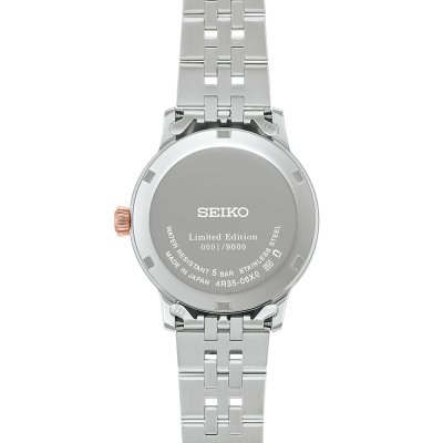 Zegarek marki Seiko ma stal chirurgiczna kopertę 34 mm średnicy i jest wyposażony w pasek z materiału stal chirurgiczna. Wewnątrz koperty jest mechanizm Seiko i zegarek ma także szkiełko Szkiełko hardlex.