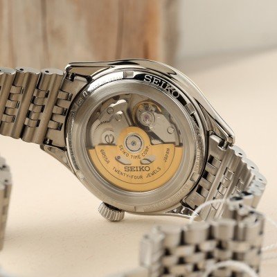 Zegarek marki Seiko ma stal chirurgiczna kopertę 40.2 mm średnicy i jest wyposażony w pasek z materiału stal chirurgiczna. Wewnątrz koperty jest mechanizm Seiko i zegarek ma także szkiełko Pojedyncze szafirowe szkiełko anty-refleksyjne.