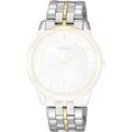 Pasek do zegarka Seiko jest wykonany z materiału stal nierdzewna i jest zamocowany do zegarka za pomocą… kołki sprężyste. Ten pasek ma szerokość 19 mm i zamyka się za pomocą zapięcie zatrzaskowe z przyciskami. Ten pasek nie ma prostego mocowania, co oznacza, że pasuje wyłącznie do zegarków z poniższej listy.