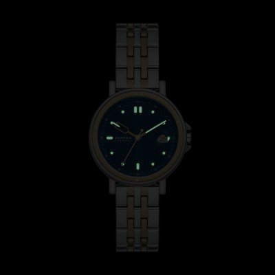 Zegarek marki Skagen ma stal chirurgiczna kopertę 34 mm średnicy i jest wyposażony w pasek z materiału stal chirurgiczna. Wewnątrz koperty jest mechanizm Seiko Instruments Inc. i zegarek ma także szkiełko Mineralny.