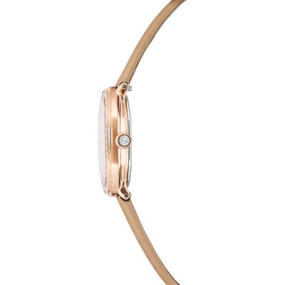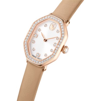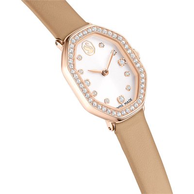 Zegarek marki Swarovski ma stal chirurgiczna kopertę 18 mm średnicy i jest wyposażony w pasek z materiału skóra. Wewnątrz koperty jest mechanizm Ronda i zegarek ma także szkiełko Mineralny.