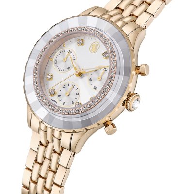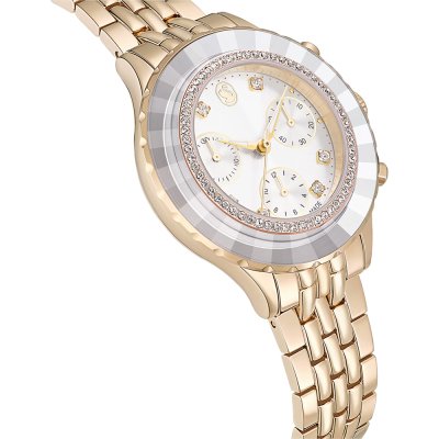 Zegarek marki Swarovski ma stal chirurgiczna kopertę 37 mm średnicy i jest wyposażony w pasek z materiału stal chirurgiczna. Wewnątrz koperty jest mechanizm Ronda i zegarek ma także szkiełko Mineralny.