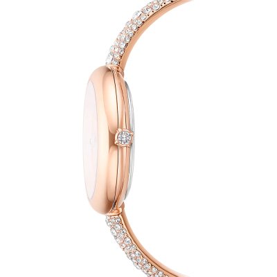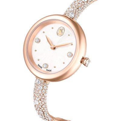 Zegarek marki Swarovski ma stal chirurgiczna kopertę 28 mm średnicy i jest wyposażony w pasek z materiału stal chirurgiczna.