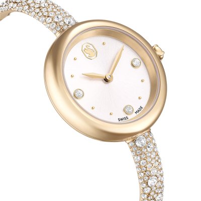 Zegarek marki Swarovski ma stal chirurgiczna kopertę 28 mm średnicy i jest wyposażony w pasek z materiału stal chirurgiczna.
