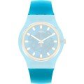 Pasek do zegarka Swatch jest wykonany z materiału silikonowo i jest zamocowany do zegarka za pomocą… stalowe sworznie. Ten pasek ma szerokość 19.7 mm i zamyka się za pomocą sprzączka. Ten pasek nie ma prostego mocowania, co oznacza, że pasuje wyłącznie do zegarków z poniższej listy.
