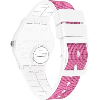 Zegarek marki Swatch ma Plastik / Żywica syntetyczna kopertę 34 mm średnicy i jest wyposażony w pasek z materiału guma. Wewnątrz koperty jest mechanizm ETA i zegarek ma także szkiełko Akryl.