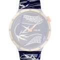 Pasek do zegarka Swatch jest wykonany z materiału silikonowo i jest zamocowany do zegarka za pomocą… stalowe sworznie. Ten pasek ma szerokość 19.7 mm i zamyka się za pomocą sprzączka. Ten pasek nie ma prostego mocowania, co oznacza, że pasuje wyłącznie do zegarków z poniższej listy.