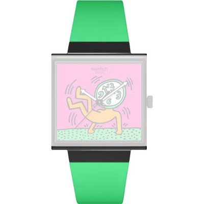 Pasek do zegarka Swatch jest wykonany z materiału silikonowo i jest zamocowany do zegarka za pomocą… stalowe sworznie. Ten pasek ma szerokość 21 mm i zamyka się za pomocą sprzączka. Ten pasek nie ma prostego mocowania, co oznacza, że pasuje wyłącznie do zegarków z poniższej listy.