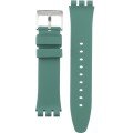 Pasek do zegarka Swatch jest wykonany z materiału silikonowo i jest zamocowany do zegarka za pomocą… stalowe sworznie. Ten pasek ma szerokość 21 mm i zamyka się za pomocą sprzączka. Ten pasek nie ma prostego mocowania, co oznacza, że pasuje wyłącznie do zegarków z poniższej listy.