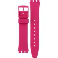 Pasek do zegarka Swatch jest wykonany z materiału silikonowo i jest zamocowany do zegarka za pomocą… stalowe sworznie. Ten pasek ma szerokość 17 mm i zamyka się za pomocą sprzączka. Ten pasek nie ma prostego mocowania, co oznacza, że pasuje wyłącznie do zegarków z poniższej listy.