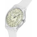 Zegarek marki Swatch ma Tworzywa sztuczne pochodzenia biologicznego kopertę 41 mm średnicy i jest wyposażony w pasek z materiału guma. Wewnątrz koperty jest mechanizm ETA i zegarek ma także szkiełko Akryl.