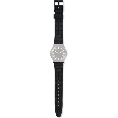 Pasek do zegarka Swatch jest wykonany z materiału silikonowo i jest zamocowany do zegarka za pomocą… stalowe sworznie. Ten pasek ma szerokość 17 mm i zamyka się za pomocą sprzączka. Ten pasek nie ma prostego mocowania, co oznacza, że pasuje wyłącznie do zegarków z poniższej listy.