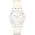 Pasek do zegarka Swatch jest wykonany z materiału skóra i jest zamocowany do zegarka za pomocą… stalowe sworznie. Ten pasek ma szerokość 17 mm i zamyka się za pomocą sprzączka. Ten pasek nie ma prostego mocowania, co oznacza, że pasuje wyłącznie do zegarków z poniższej listy.
