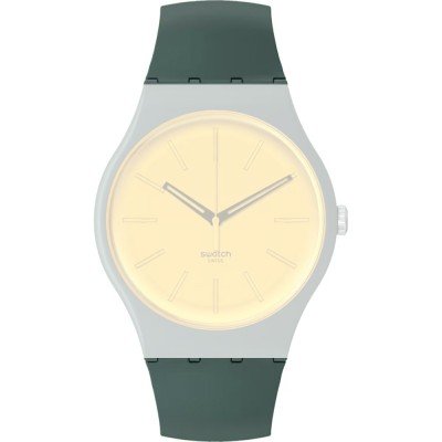 Pasek do zegarka Swatch jest wykonany z materiału tworzywa sztuczne pochodzenia biologicznego i jest zamocowany do zegarka za pomocą… stalowe sworznie. Ten pasek ma szerokość 19.7 mm i zamyka się za pomocą sprzączka. Ten pasek nie ma prostego mocowania, co oznacza, że pasuje wyłącznie do zegarków z poniższej listy.