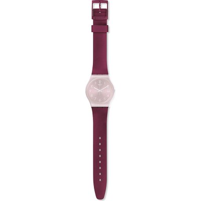 Pasek do zegarka Swatch jest wykonany z materiału silikonowo i jest zamocowany do zegarka za pomocą… stalowe sworznie. Ten pasek ma szerokość 17 mm i zamyka się za pomocą sprzączka. Ten pasek nie ma prostego mocowania, co oznacza, że pasuje wyłącznie do zegarków z poniższej listy.