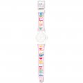 Pasek do zegarka Swatch jest wykonany z materiału silikonowo i jest zamocowany do zegarka za pomocą… stalowe sworznie. Ten pasek ma szerokość 17 mm i zamyka się za pomocą sprzączka. Ten pasek nie ma prostego mocowania, co oznacza, że pasuje wyłącznie do zegarków z poniższej listy.