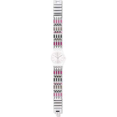Pasek do zegarka Swatch jest wykonany z materiału stal nierdzewna i jest zamocowany do zegarka za pomocą… stalowe sworznie. Ten pasek ma szerokość 12 mm i zamyka się za pomocą zapięcie biżuteryjne. Ten pasek nie ma prostego mocowania, co oznacza, że pasuje wyłącznie do zegarków z poniższej listy.