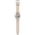 Zegarek marki Swatch ma stal chirurgiczna kopertę 42 mm średnicy i jest wyposażony w pasek z materiału skóra. Wewnątrz koperty jest mechanizm ETA i zegarek ma także szkiełko Mineralny.
