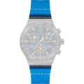 Pasek do zegarka Swatch jest wykonany z materiału z materiału i jest zamocowany do zegarka za pomocą… stalowe sworznie. Ten pasek ma szerokość 21 mm i zamyka się za pomocą sprzączka. Ten pasek nie ma prostego mocowania, co oznacza, że pasuje wyłącznie do zegarków z poniższej listy.