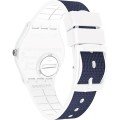 Zegarek marki Swatch ma Plastik / Żywica syntetyczna kopertę 34 mm średnicy i jest wyposażony w pasek z materiału guma. Wewnątrz koperty jest mechanizm ETA i zegarek ma także szkiełko Akryl.