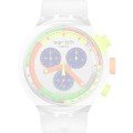 Pasek do zegarka Swatch jest wykonany z materiału silikonowo i jest zamocowany do zegarka za pomocą… stalowe sworznie. Ten pasek ma szerokość 19.7 mm i zamyka się za pomocą sprzączka. Ten pasek nie ma prostego mocowania, co oznacza, że pasuje wyłącznie do zegarków z poniższej listy.
