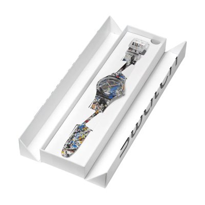 Zegarek marki Swatch ma Żywica kopertę 41 mm średnicy i jest wyposażony w pasek z materiału guma. Wewnątrz koperty jest mechanizm ETA i zegarek ma także szkiełko Akryl.