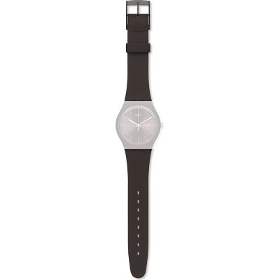 Pasek do zegarka Swatch jest wykonany z materiału silikonowo i jest zamocowany do zegarka za pomocą… stalowe sworznie. Ten pasek ma szerokość 19.7 mm i zamyka się za pomocą sprzączka. Ten pasek nie ma prostego mocowania, co oznacza, że pasuje wyłącznie do zegarków z poniższej listy.