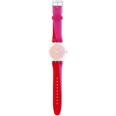 Pasek do zegarka Swatch jest wykonany z materiału silikonowo i jest zamocowany do zegarka za pomocą… stalowe sworznie. Ten pasek ma szerokość 19.7 mm i zamyka się za pomocą sprzączka. Ten pasek nie ma prostego mocowania, co oznacza, że pasuje wyłącznie do zegarków z poniższej listy.