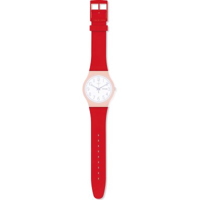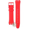 Pasek do zegarka Swatch jest wykonany z materiału silikonowo i jest zamocowany do zegarka za pomocą… stalowe sworznie. Ten pasek ma szerokość 19.7 mm i zamyka się za pomocą sprzączka. Ten pasek nie ma prostego mocowania, co oznacza, że pasuje wyłącznie do zegarków z poniższej listy.