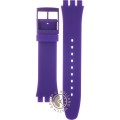Pasek do zegarka Swatch jest wykonany z materiału silikonowo i jest zamocowany do zegarka za pomocą… stalowe sworznie. Ten pasek ma szerokość 19.7 mm i zamyka się za pomocą sprzączka. Ten pasek nie ma prostego mocowania, co oznacza, że pasuje wyłącznie do zegarków z poniższej listy.