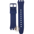 Pasek do zegarka Swatch jest wykonany z materiału silikonowo i jest zamocowany do zegarka za pomocą… stalowe sworznie. Ten pasek ma szerokość 20.1 mm i zamyka się za pomocą sprzączka. Ten pasek nie ma prostego mocowania, co oznacza, że pasuje wyłącznie do zegarków z poniższej listy.