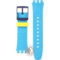 Pasek do zegarka Swatch jest wykonany z materiału silikonowo i jest zamocowany do zegarka za pomocą… stalowe sworznie. Ten pasek ma szerokość 20.1 mm i zamyka się za pomocą sprzączka. Ten pasek nie ma prostego mocowania, co oznacza, że pasuje wyłącznie do zegarków z poniższej listy.