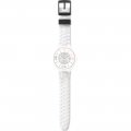 Pasek do zegarka Swatch jest wykonany z materiału silikonowo i jest zamocowany do zegarka za pomocą… stalowe sworznie. Ten pasek ma szerokość 21.3 mm i zamyka się za pomocą sprzączka. Ten pasek nie ma prostego mocowania, co oznacza, że pasuje wyłącznie do zegarków z poniższej listy.