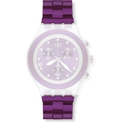 Pasek do zegarka Swatch jest wykonany z materiału aluminium i jest zamocowany do zegarka za pomocą… stalowe sworznie. Ten pasek ma szerokość 19.9 mm i zamyka się za pomocą zapięcie zatrzaskowe z zabezpieczeniem. Ten pasek nie ma prostego mocowania, co oznacza, że pasuje wyłącznie do zegarków z poniższej listy.