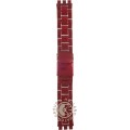 Pasek do zegarka Swatch jest wykonany z materiału aluminium i jest zamocowany do zegarka za pomocą… stalowe sworznie. Ten pasek ma szerokość 19.9 mm i zamyka się za pomocą zapięcie zatrzaskowe z przyciskami i zabezpieczeniem. Ten pasek nie ma prostego mocowania, co oznacza, że pasuje wyłącznie do zegarków z poniższej listy.