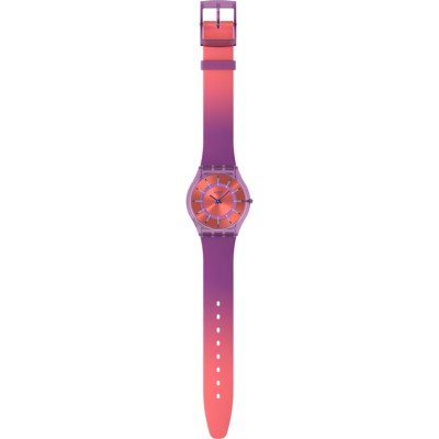 Zegarek marki Swatch ma Tworzywa sztuczne pochodzenia biologicznego kopertę 33.7 mm średnicy i jest wyposażony w pasek z materiału guma. Wewnątrz koperty jest mechanizm ETA i zegarek ma także szkiełko Akryl.