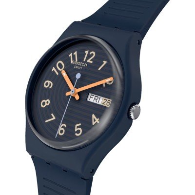 Zegarek marki Swatch ma Tworzywa sztuczne pochodzenia biologicznego kopertę 34 mm średnicy i jest wyposażony w pasek z materiału guma. Wewnątrz koperty jest mechanizm ETA i zegarek ma także szkiełko Akryl.