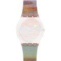 Pasek do zegarka Swatch jest wykonany z materiału silikonowo i jest zamocowany do zegarka za pomocą… stalowe sworznie. Ten pasek ma szerokość 17 mm i zamyka się za pomocą sprzączka. Ten pasek nie ma prostego mocowania, co oznacza, że pasuje wyłącznie do zegarków z poniższej listy.