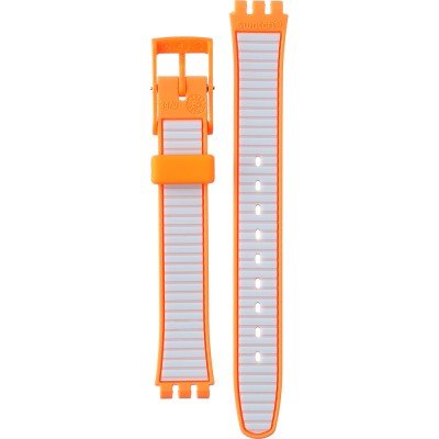 Pasek do zegarka Swatch jest wykonany z materiału silikonowo i jest zamocowany do zegarka za pomocą… stalowe sworznie. Ten pasek ma szerokość 12 mm i zamyka się za pomocą sprzączka. Ten pasek nie ma prostego mocowania, co oznacza, że pasuje wyłącznie do zegarków z poniższej listy.
