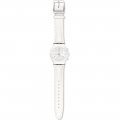 Pasek do zegarka Swatch jest wykonany z materiału skóra i jest zamocowany do zegarka za pomocą… stalowe sworznie. Ten pasek ma szerokość 19.7 mm i zamyka się za pomocą sprzączka. Ten pasek nie ma prostego mocowania, co oznacza, że pasuje wyłącznie do zegarków z poniższej listy.