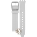 Pasek do zegarka Swatch jest wykonany z materiału silikonowo i jest zamocowany do zegarka za pomocą… stalowe sworznie. Ten pasek ma szerokość 17 mm i zamyka się za pomocą sprzączka. Ten pasek nie ma prostego mocowania, co oznacza, że pasuje wyłącznie do zegarków z poniższej listy.