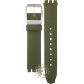 Pasek do zegarka Swatch jest wykonany z materiału silikonowo i jest zamocowany do zegarka za pomocą… stalowe sworznie. Ten pasek ma szerokość 17 mm i zamyka się za pomocą sprzączka. Ten pasek nie ma prostego mocowania, co oznacza, że pasuje wyłącznie do zegarków z poniższej listy.
