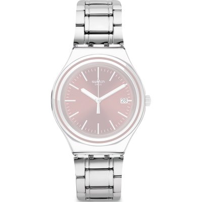 Pasek do zegarka Swatch jest wykonany z materiału stal nierdzewna i jest zamocowany do zegarka za pomocą… stalowe sworznie. Ten pasek ma szerokość 17 mm i zamyka się za pomocą zapięcie zatrzaskowe z zabezpieczeniem. Ten pasek nie ma prostego mocowania, co oznacza, że pasuje wyłącznie do zegarków z poniższej listy.