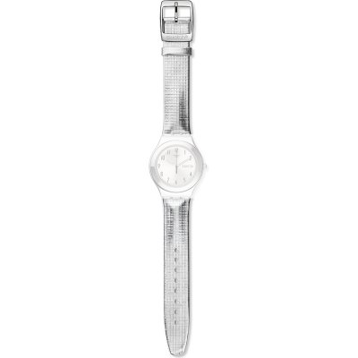 Pasek do zegarka Swatch jest wykonany z materiału skóra i jest zamocowany do zegarka za pomocą… stalowe sworznie. Ten pasek ma szerokość 17 mm i zamyka się za pomocą sprzączka. Ten pasek nie ma prostego mocowania, co oznacza, że pasuje wyłącznie do zegarków z poniższej listy.
