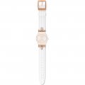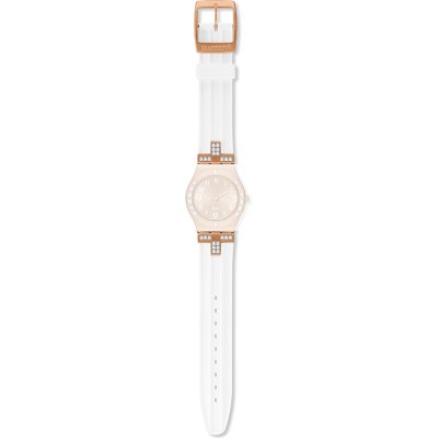 Pasek do zegarka Swatch jest wykonany z materiału silikonowo i jest zamocowany do zegarka za pomocą… stalowe sworznie. Ten pasek ma szerokość 17 mm i zamyka się za pomocą sprzączka. Ten pasek nie ma prostego mocowania, co oznacza, że pasuje wyłącznie do zegarków z poniższej listy.