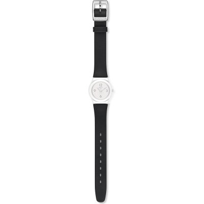 Pasek do zegarka Swatch jest wykonany z materiału skóra i jest zamocowany do zegarka za pomocą… stalowe sworznie. Ten pasek ma szerokość 12 mm i zamyka się za pomocą sprzączka. Ten pasek nie ma prostego mocowania, co oznacza, że pasuje wyłącznie do zegarków z poniższej listy.