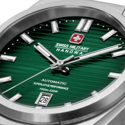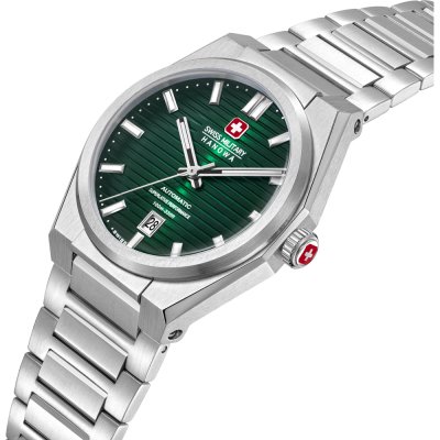 Zegarek marki Swiss Military Hanowa ma stal chirurgiczna kopertę 41 mm średnicy i jest wyposażony w pasek z materiału stal chirurgiczna. Wewnątrz koperty jest mechanizm Soprod i zegarek ma także szkiełko Sapphire.