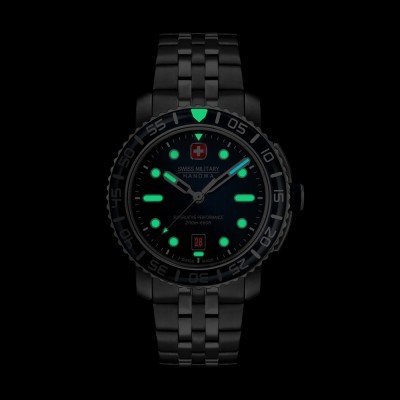 Zegarek jest wodoodporny do 20ATM. Oznacza to, że zegarek nadaje się do nurkowania. Zegarek ma Swiss Military 3+2.