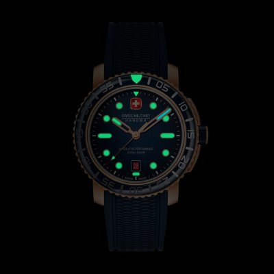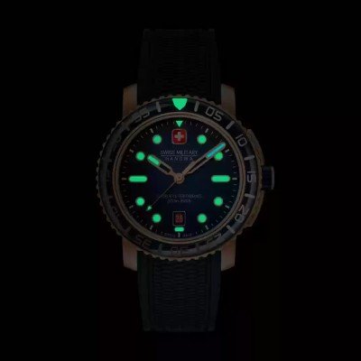 Zegarek jest wodoodporny do 20ATM. Oznacza to, że zegarek nadaje się do nurkowania. Zegarek ma Swiss Military 3+2.