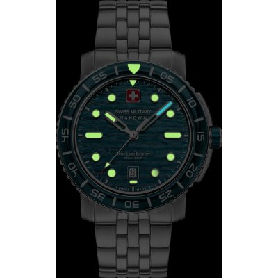 Zegarek marki Swiss Military Hanowa ma stal chirurgiczna kopertę 44 mm średnicy i jest wyposażony w pasek z materiału stal chirurgiczna. Wewnątrz koperty jest mechanizm Ronda i zegarek ma także szkiełko Sapphire.